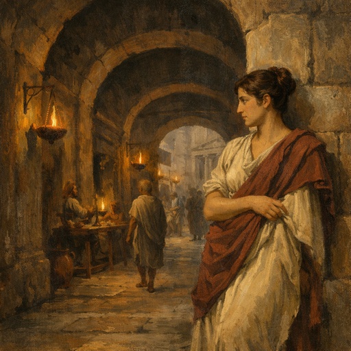 Ancient,Roman,Street,Scene.,Arched,Stone,Corridor,,Oil,Lamp,Light,